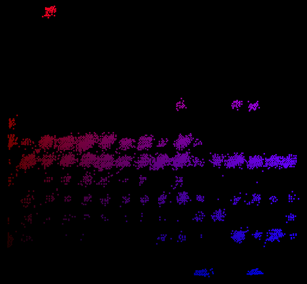 Discord user Kingrodian has observed that the data points seem to be clustered in a 16×16 grid: